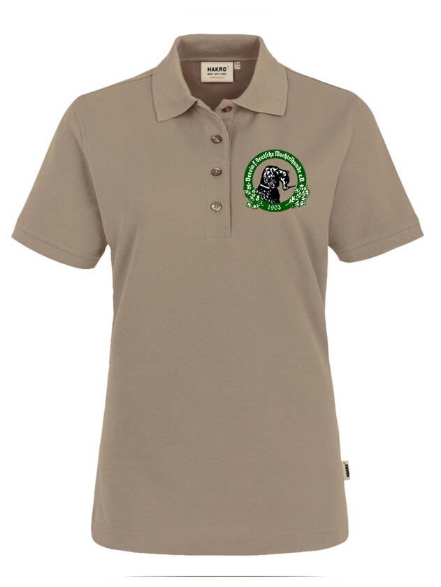 Besonders strapazierfähiges Poloshirt für Damen, mit hochwertig verarbeiteter, modischer 4-Loch-Knopfleiste mit extra haltbar angenähten, bruchsicheren Knöpfen, Ton-in-Ton mit dem gelaserten HAKRO Schriftzug. Mit Ersatzknopf, Nackenband und doppelt geriegelten Seitenschlitzen.