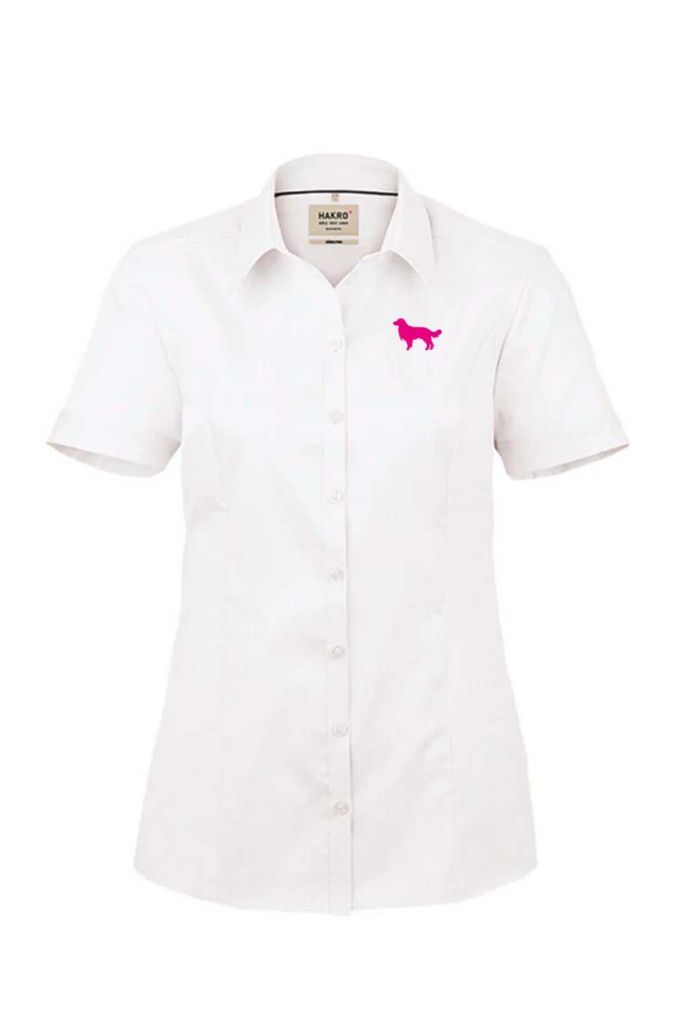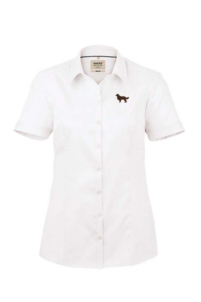 Klassische Kurzarm-Bluse mit Kent-Kragen. Leicht tailliert durch Wiener Naht im Vorderteil und Abnäher im Rückenteil. Knöpfe Ton in Ton